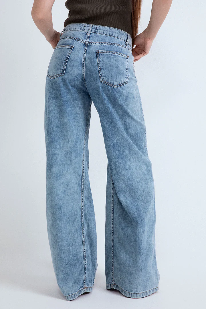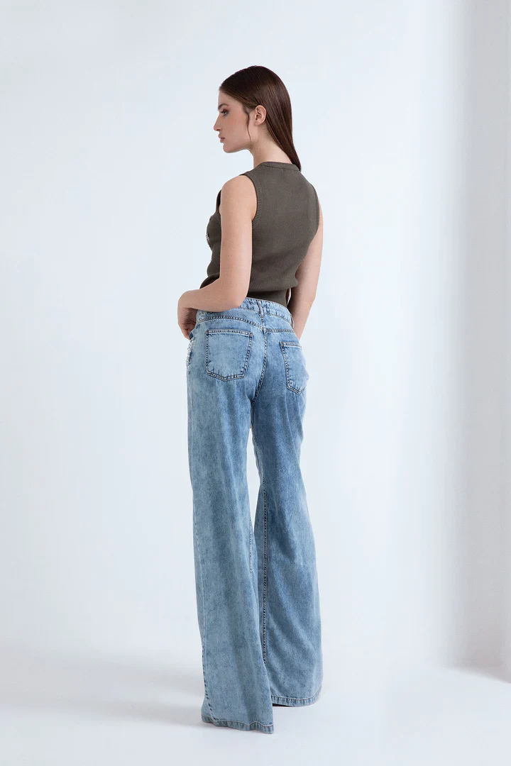 Jeans in denim largo con applicazioni strass ODI ET AMO
